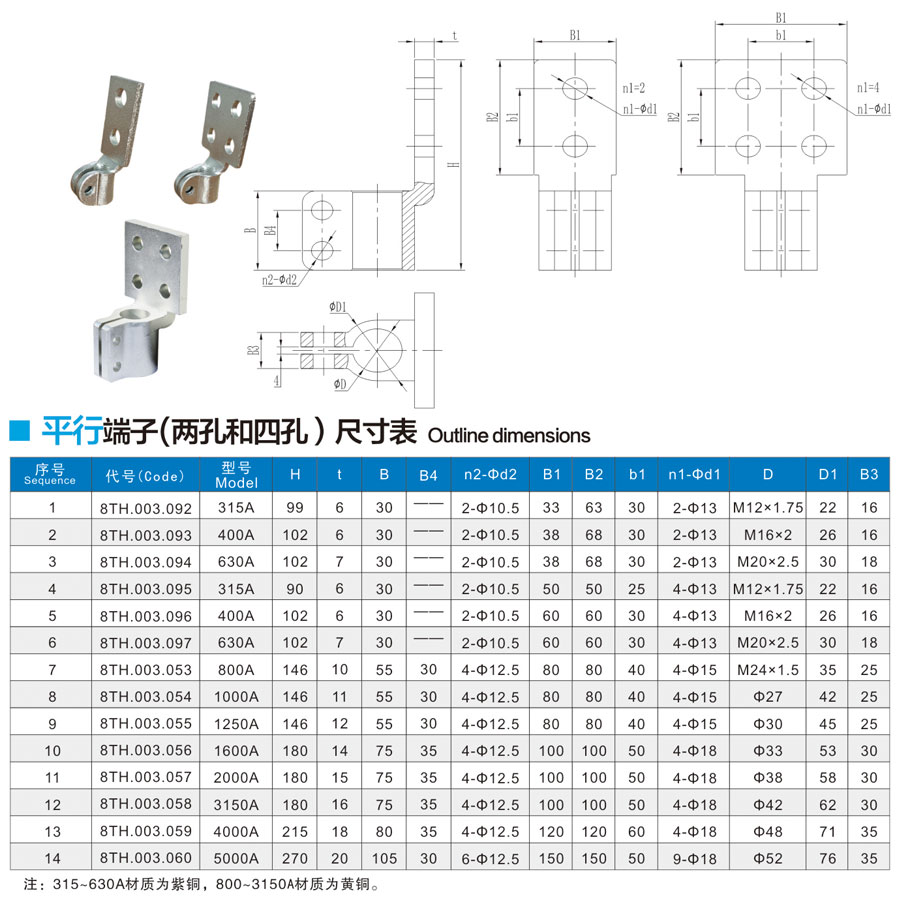 Parallel terminals (two and four holes)