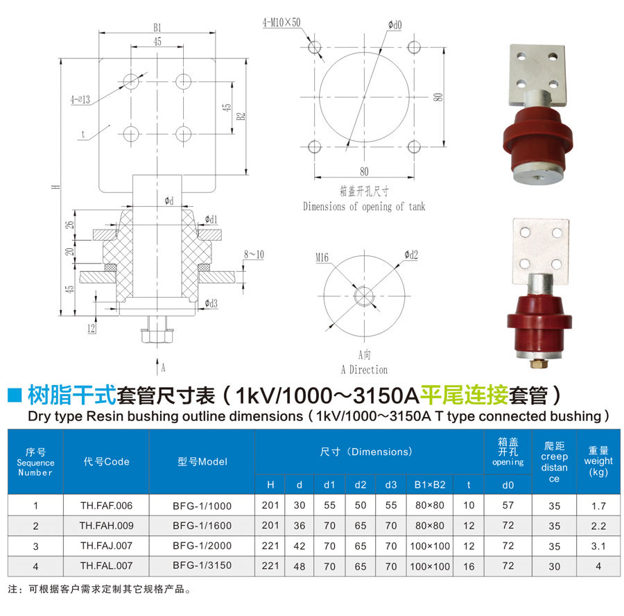 1kV/1000~3150A Flat Tail Connection Casing