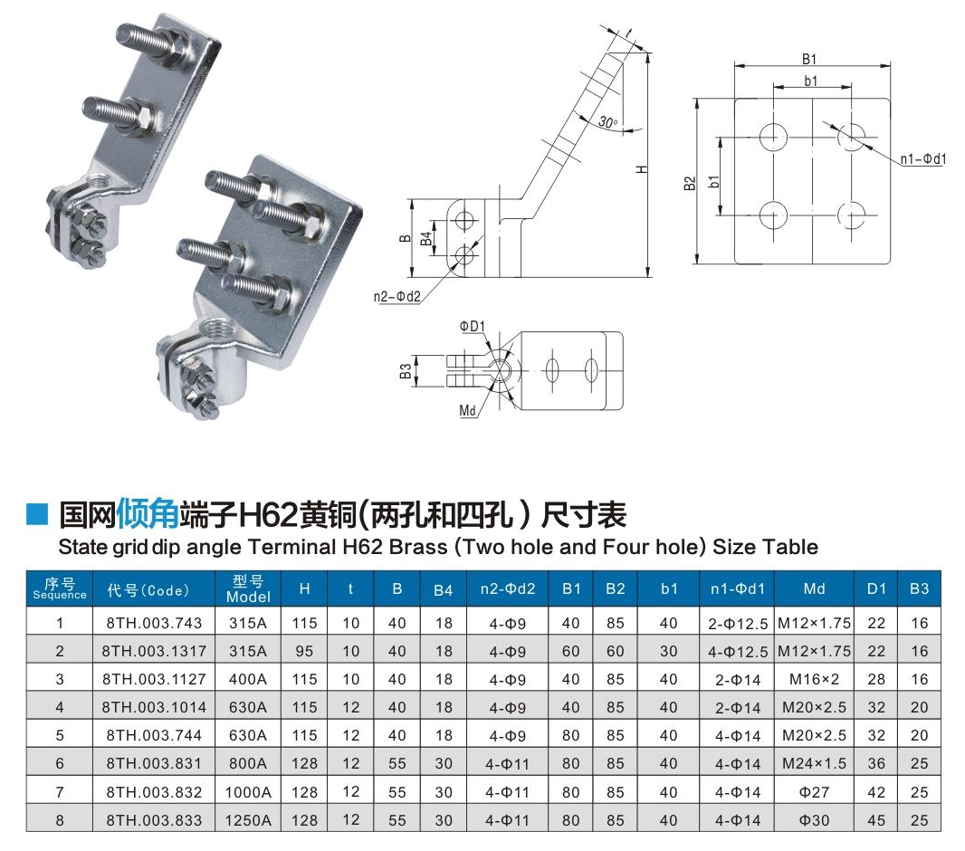 國網傾角端子H62黃銅(兩孔和四孔)