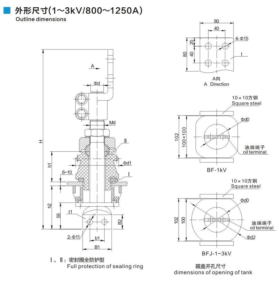 1~3kV/800~1250A鏟形連接套管