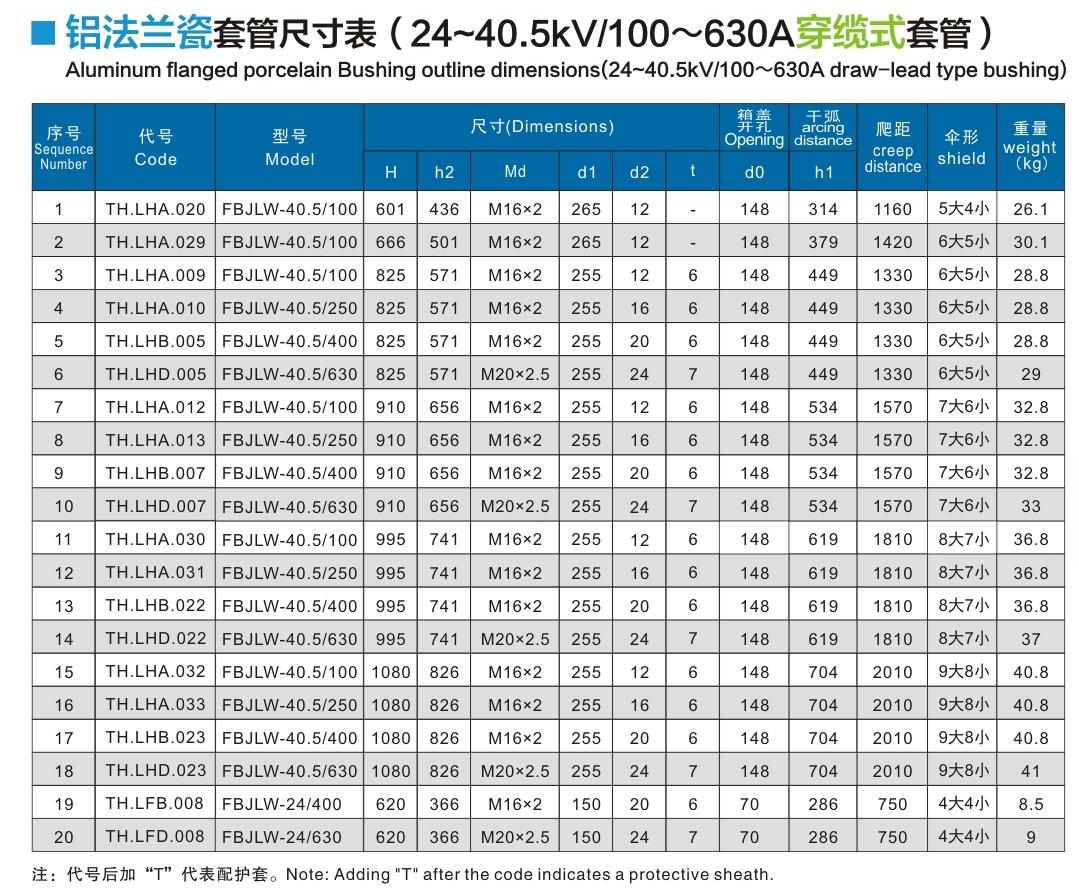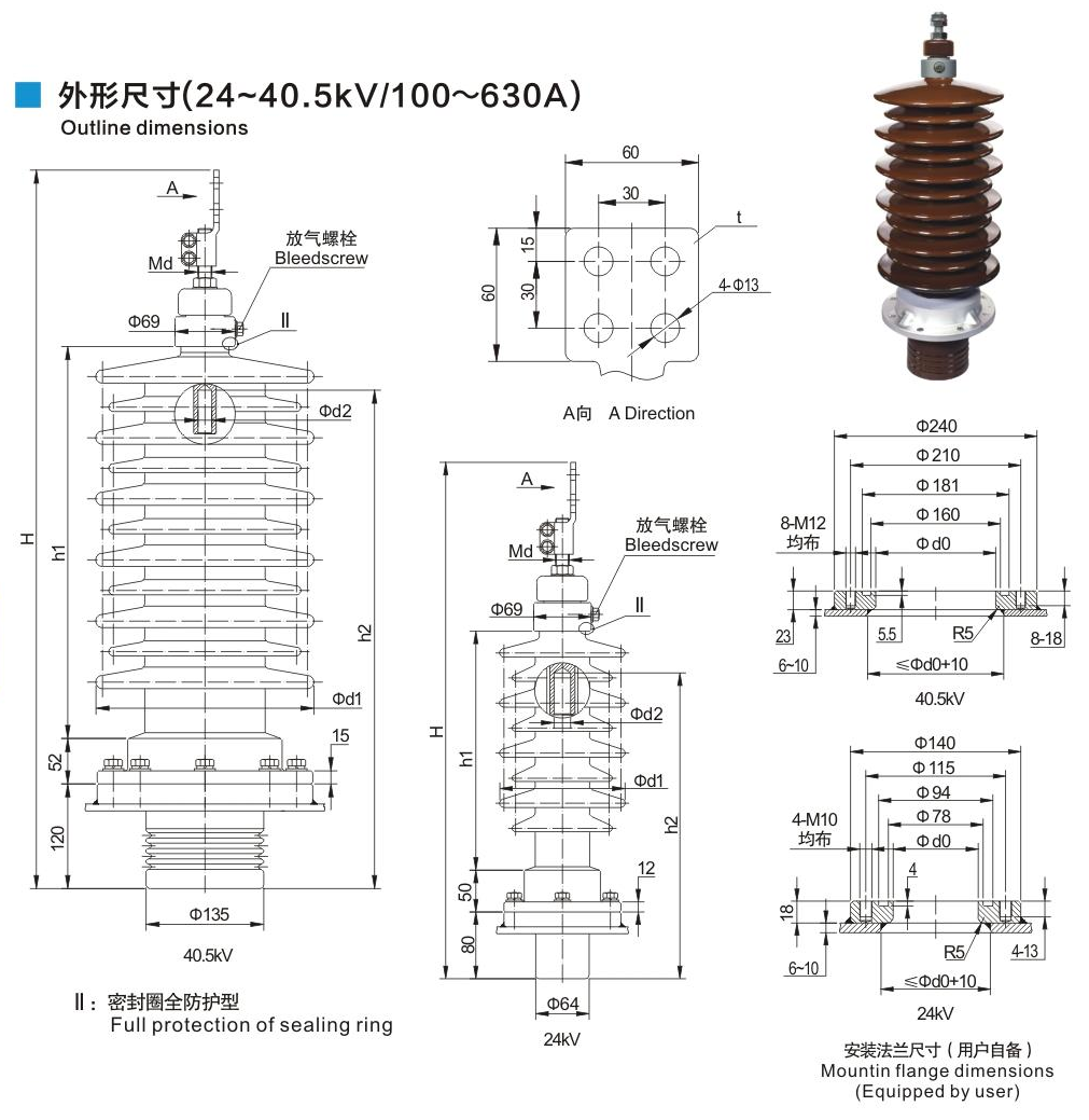 鋁法蘭瓷套管24~40.5kV/100~630A穿纜式套管