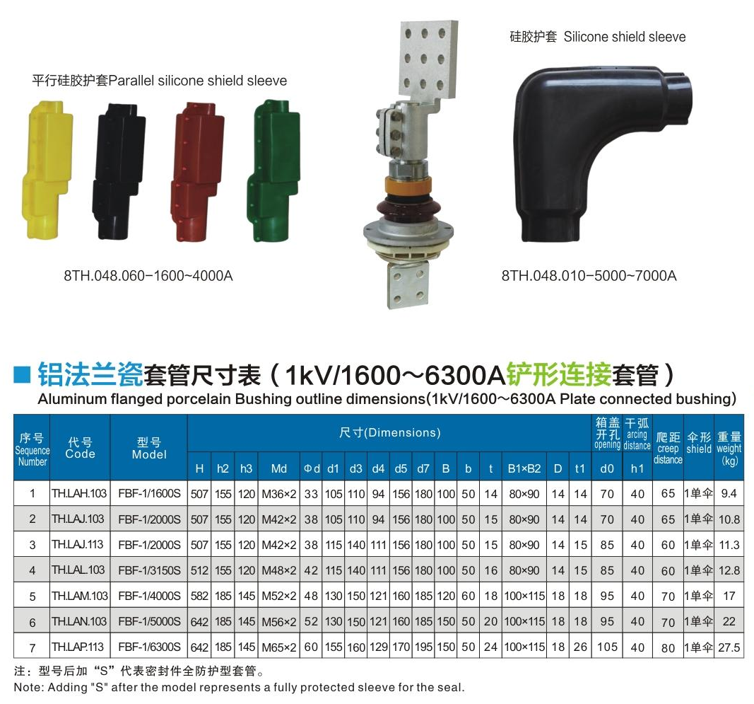 鋁法蘭瓷套管1kV/1600~6300A鏟形連接套管