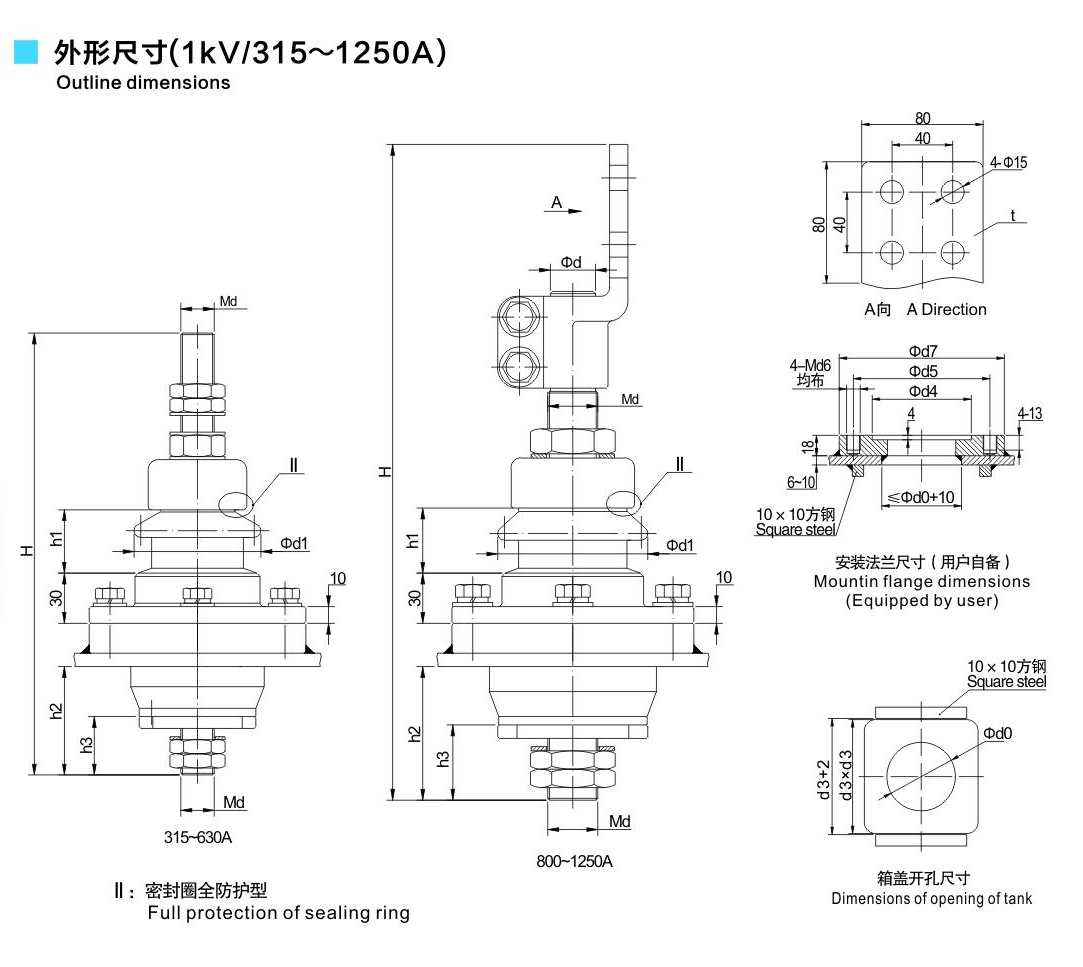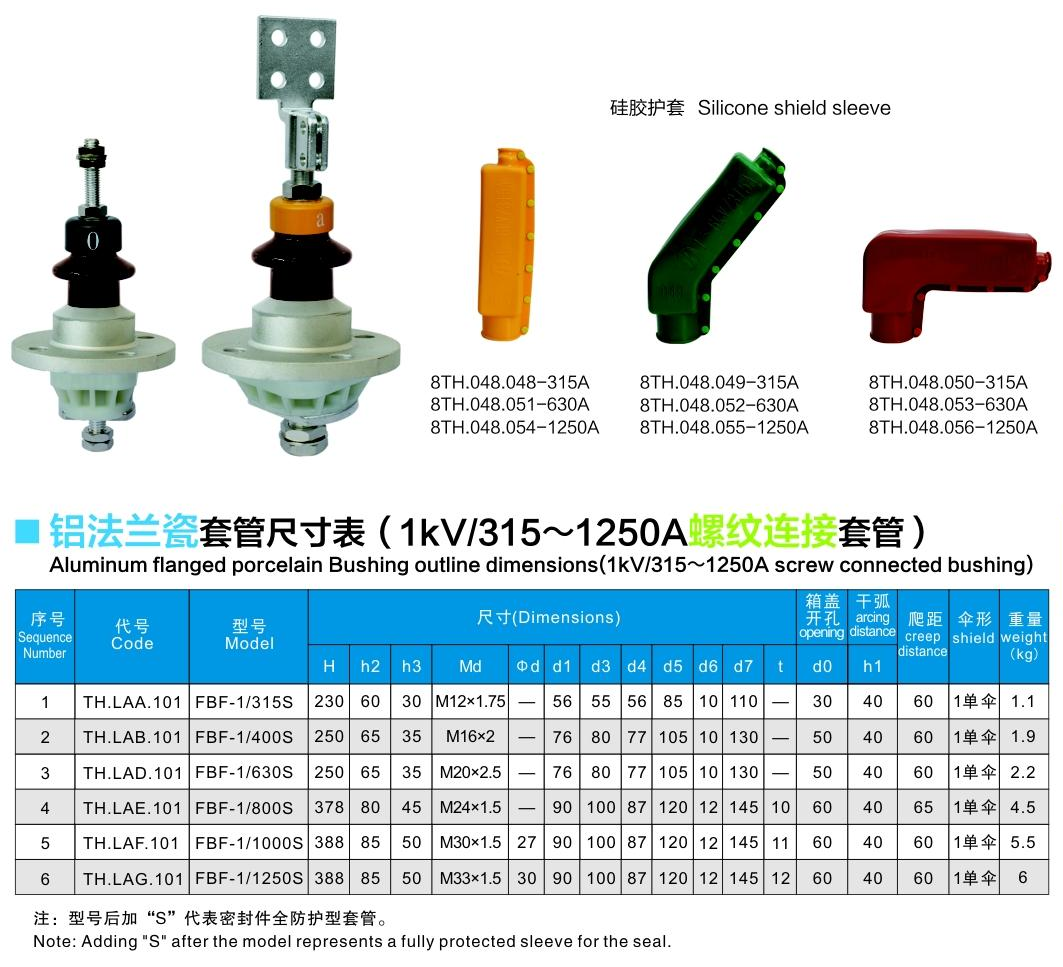 鋁法蘭瓷套管1kV/315~1250A螺紋連接套管