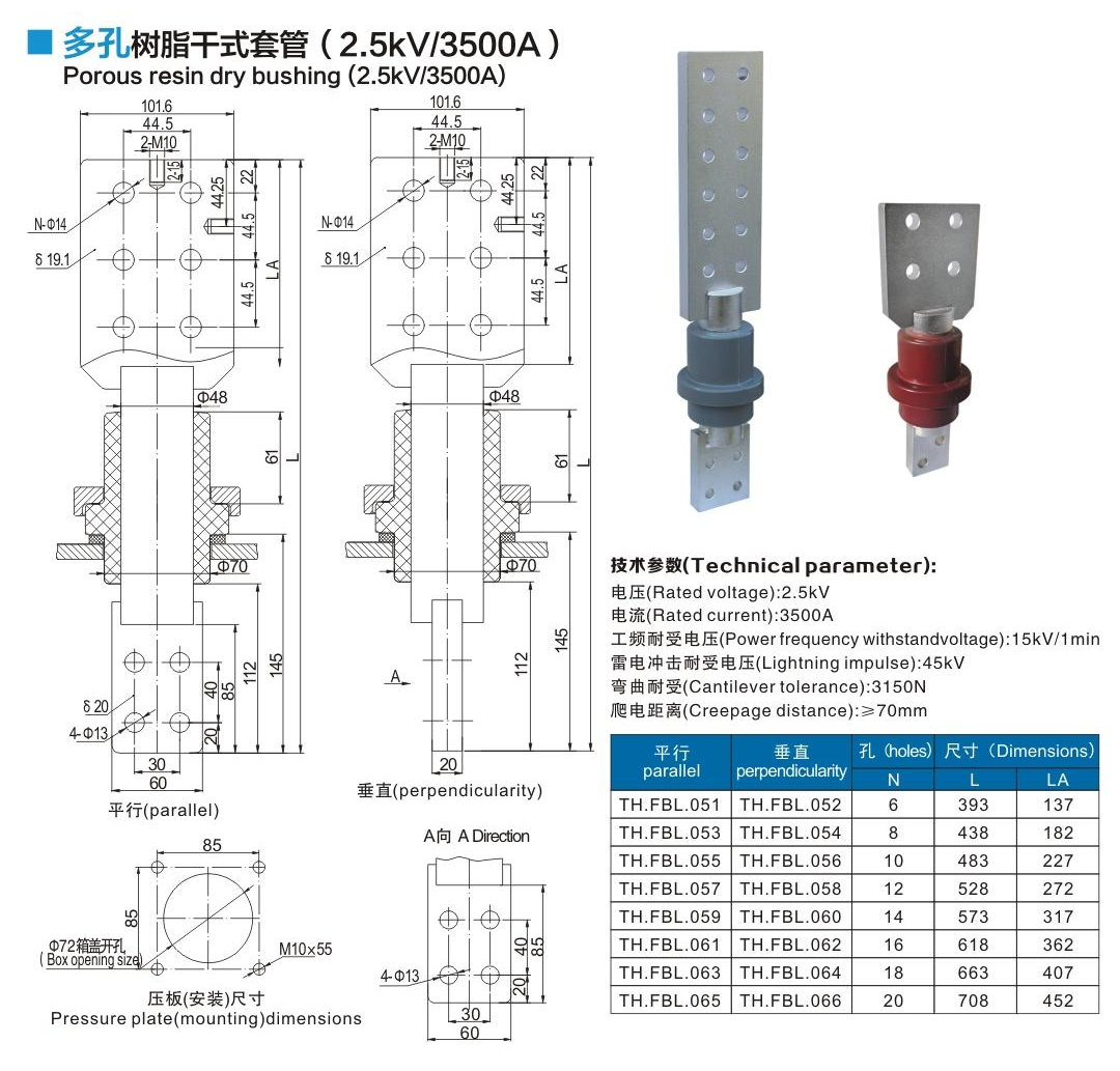 多孔樹(shù)脂干式套管2.5kV/3500A