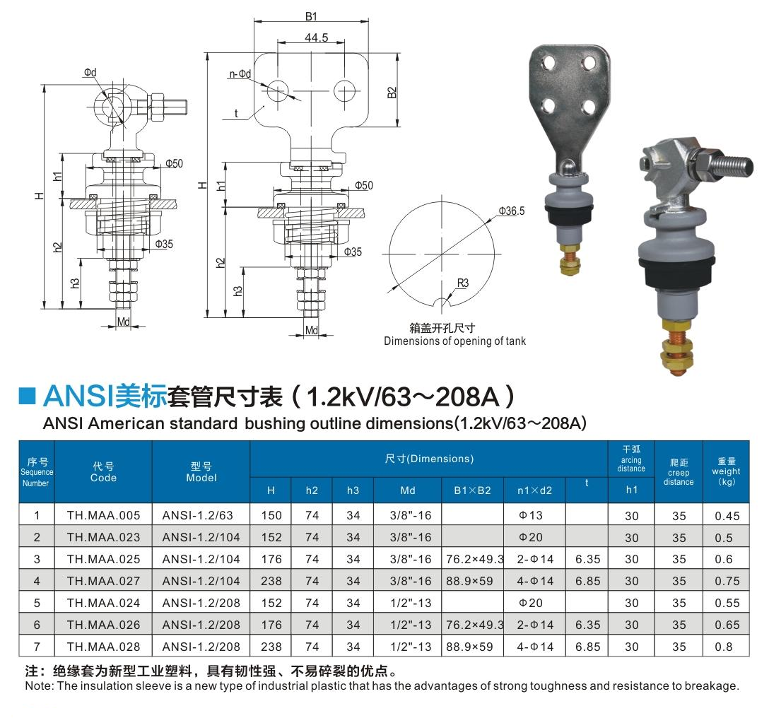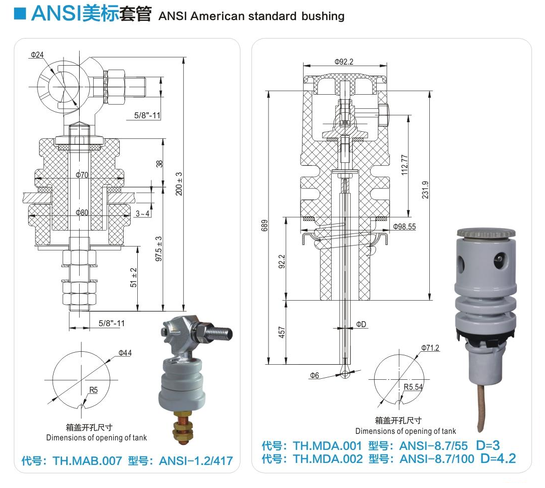 ANSI美標(biāo)套管1.2kV/63~208A