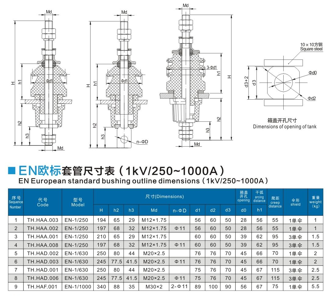 EN歐標(biāo)套管1kV/250~1000A