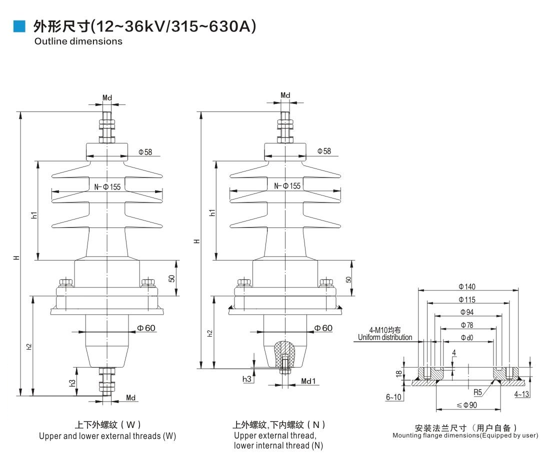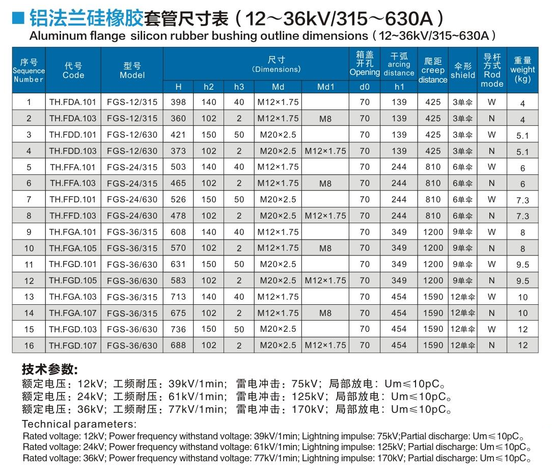 鋁法蘭硅橡膠套管12~36kV/315~630A